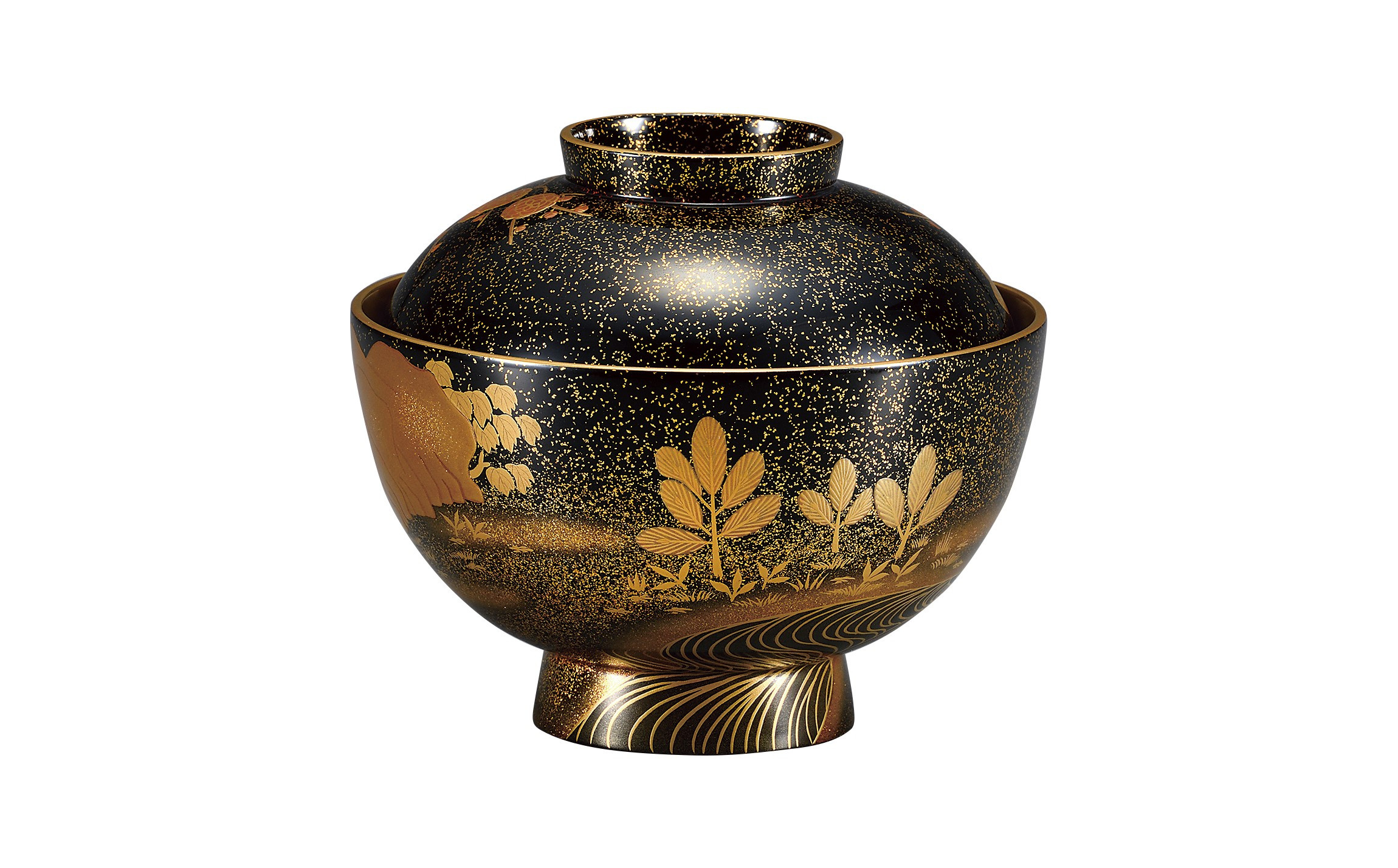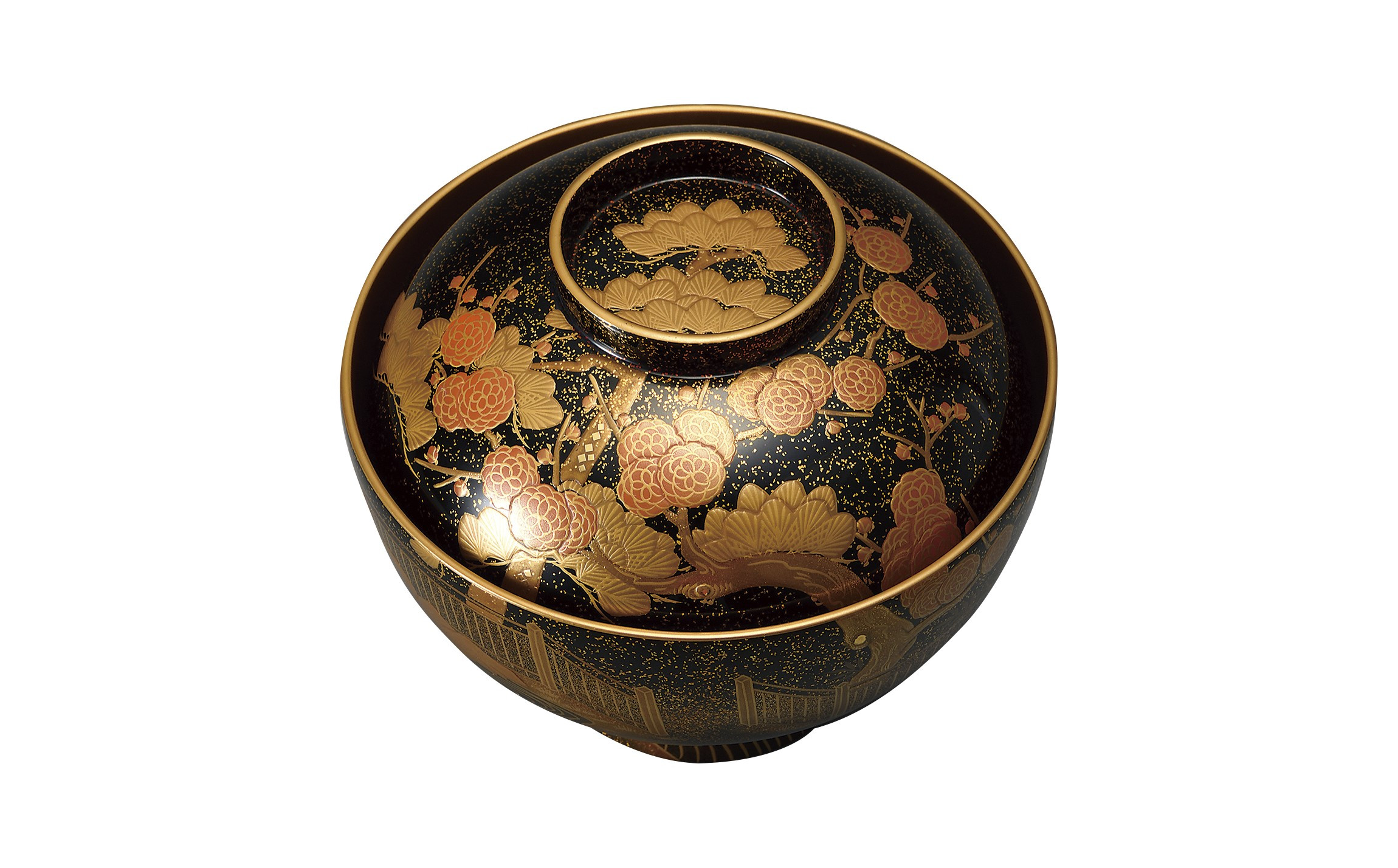輪島塗 吸物椀(内金地外梨地初音蒔絵、5客揃)