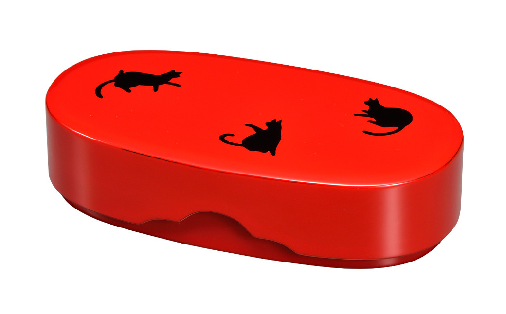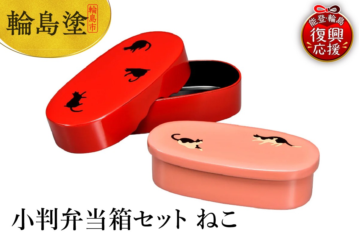 猫の蒔絵が施された、輪島塗のお弁当箱(赤)(ピンク)2個セットです。