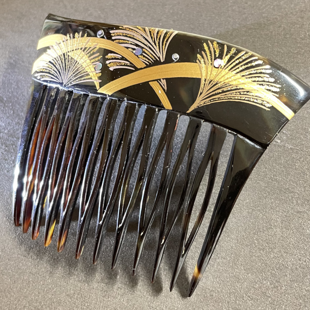 黒本べっ甲櫛に金色ですっきりとススキを描いてみました。