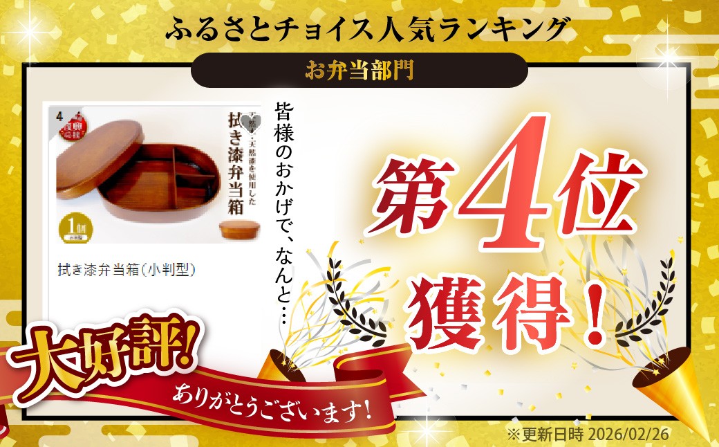 天然木・天然漆を使用した拭き漆仕上げ、曲げわっぱのお弁当箱です。 拭き漆弁当箱(小判型)