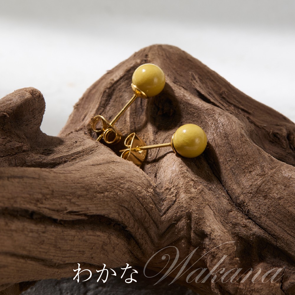 やわらかな漆の艶が引き立つシンプルな漆珠のアクセサリー 輪島でうまれた うるしのピアス わかな(黄緑) wa110-002