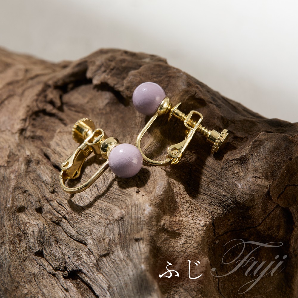 やわらかな漆の艶が引き立つシンプルな漆珠のアクセサリー 輪島でうまれた うるしのイヤリング ふじ(薄紫) wa110-013