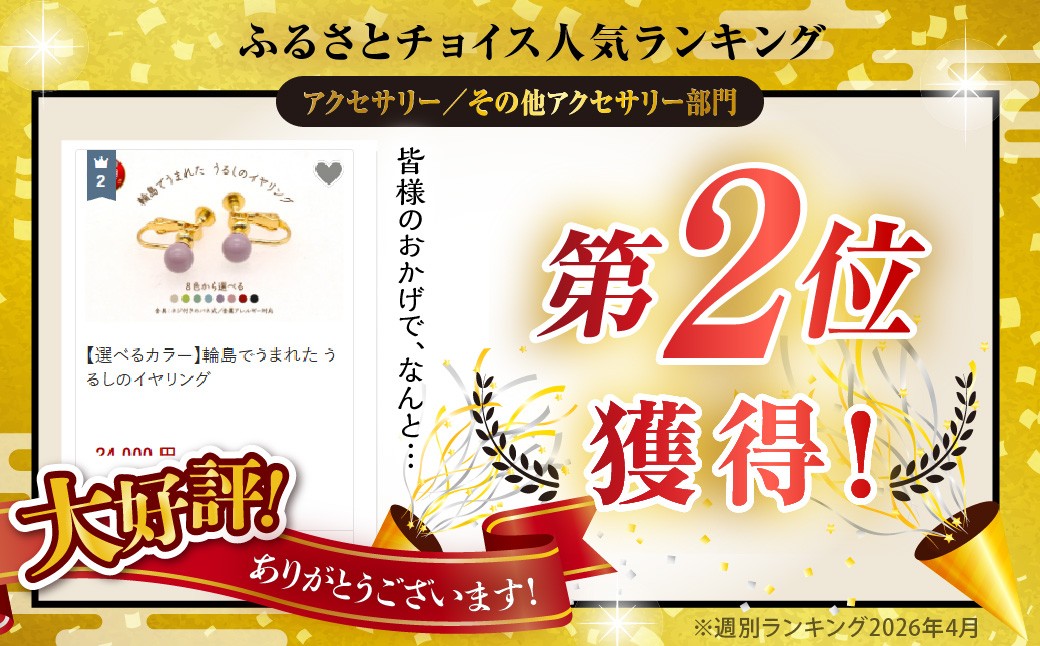 どこか能登のやさしい風景を感じられる、見たことがない「ふんわり」としたイロトリドリのうるしのイヤリングはシーンを問わずコーディネートしやすく、あなたのその日の気分で色を選べる8色展開です!