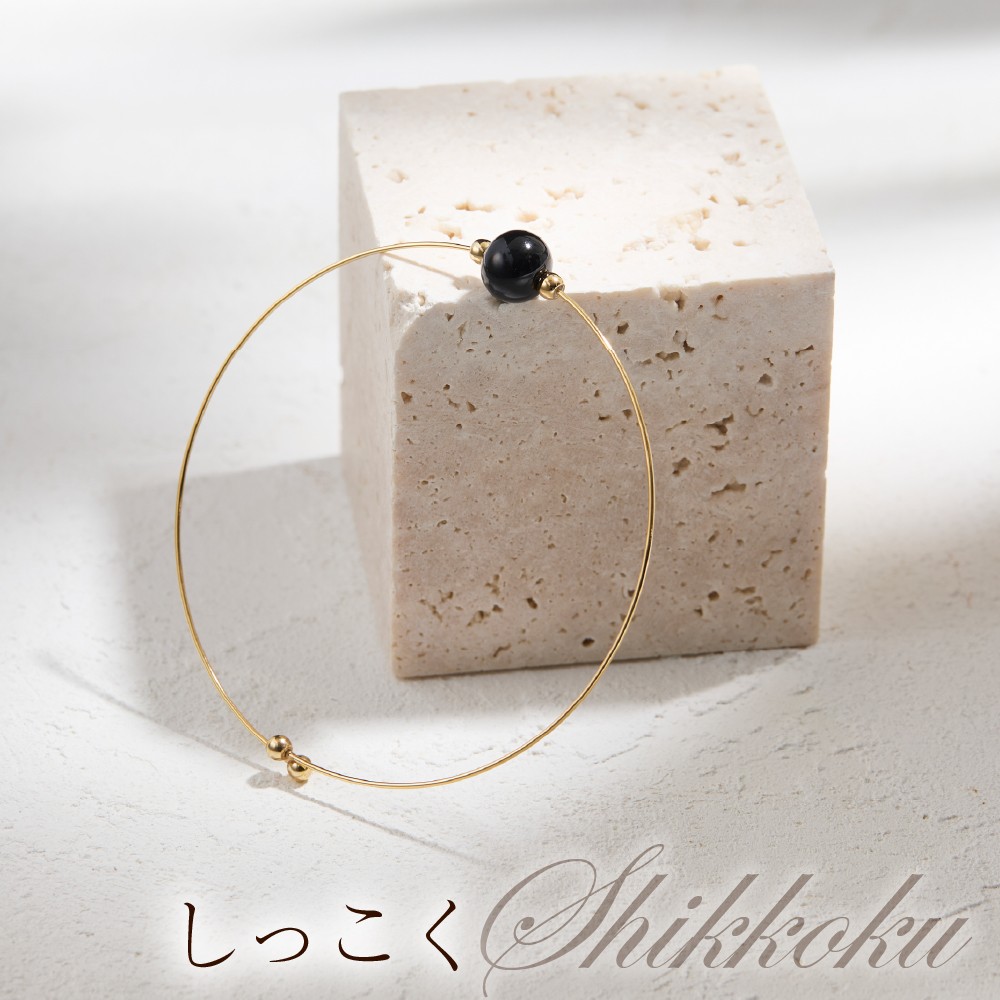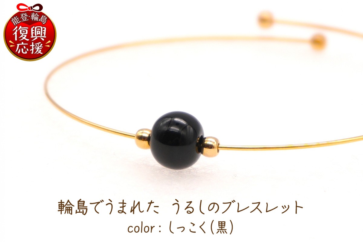 やわらかな漆の艶が引き立つシンプルな漆珠のアクセサリー 輪島でうまれた うるしのブレスレット しっこく(黒) wa110-026