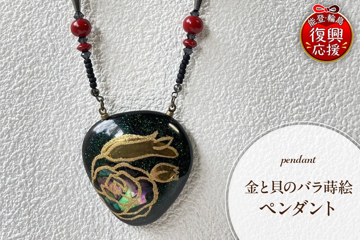 まるで星をちりばめたような輝きのベースに大胆に金の板と貝でバラ蒔絵を施しています。