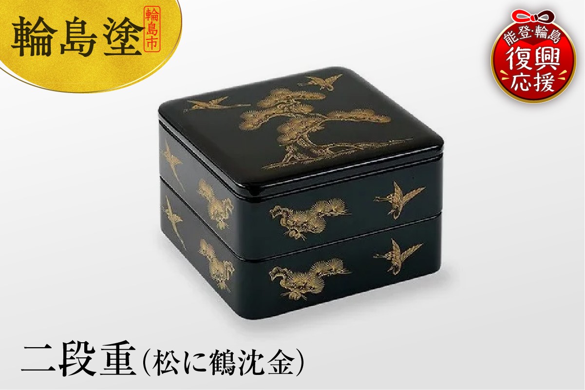 沈金が施された輪島塗の二段重です 輪島塗 二段重(松に鶴沈金)