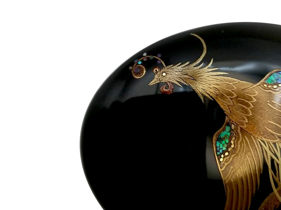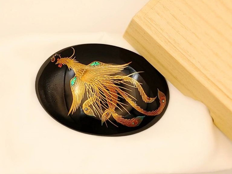 その鳳凰が羽根を広げて飛翔している様子を蒔絵にしてみました。