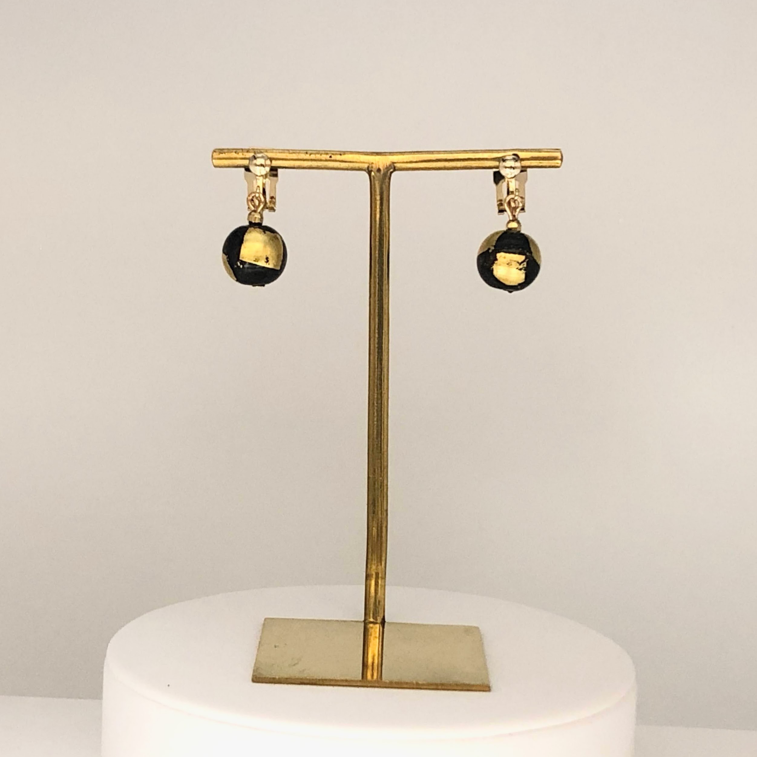 | 容量 | イヤリング 1組(2個) ■材料 漆ー天然漆 加飾―金箔、コーティング剤 木地ー黒檀(玉サイズ約10mmセミラウンド) 金具ー真鍮製(ゴールドメッキ)ニッケルフリー 約11mm×約12mm パーツー真鍮製 紙箱入り |