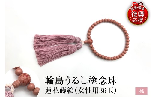 輪島うるし塗念珠(女性用36玉)桃 蓮花蒔絵 wa049-087