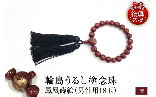 輪島うるし塗 念珠(男性用18玉) 溜 鳳凰蒔絵 wa049-088