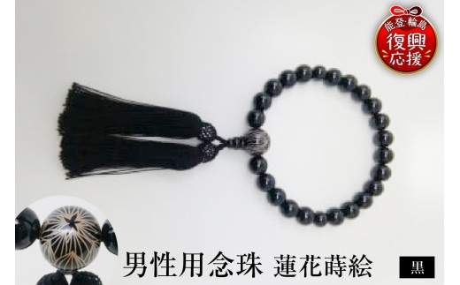 輪島うるし塗 男性用念珠(黒)蓮花蒔絵 wa049-003