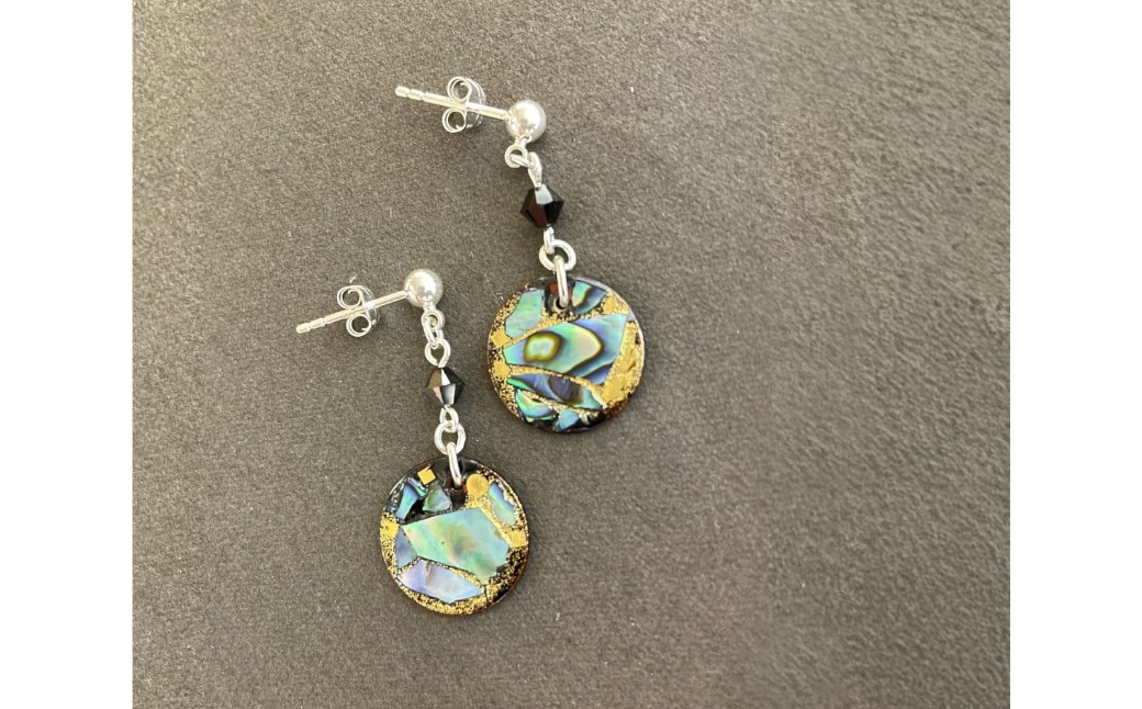 金と貝を表裏に施して、耳元で揺れる度に光り輝くように仕上げました。
