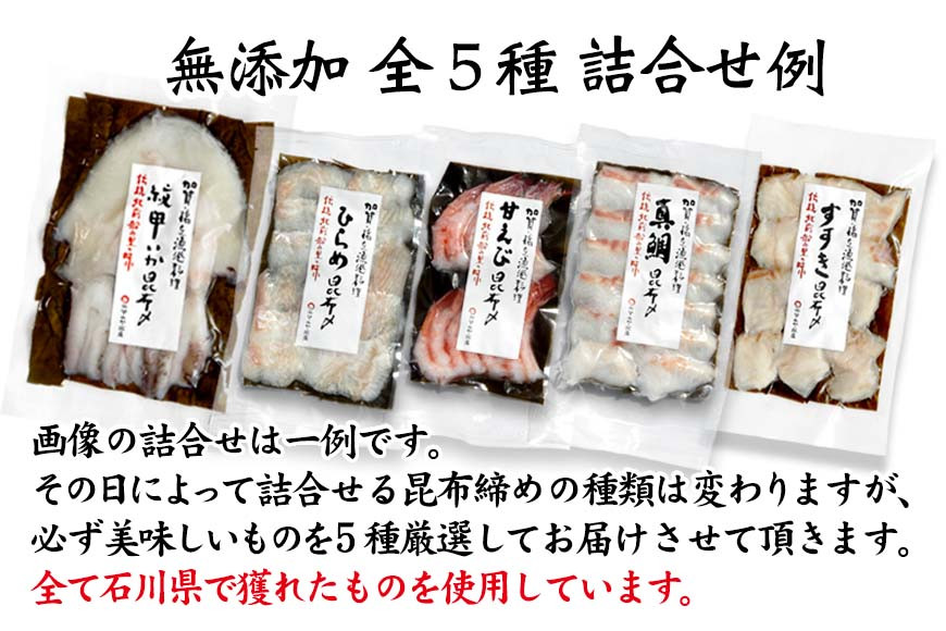 チョイスPayポイントと交換できる品 昆布締め詰合せ おまかせ5種 無添加 昆布締め 刺身 おまかせ セット 詰合せ 真空包装 おつまみ 肴 海産物 海の幸 魚介 国産 食品 復興 震災 コロナ 能登半島地震復興支援 北陸新幹線 F6P-0562