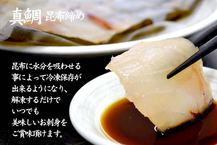 石川県で獲れた5種の魚介類の刺身を美味しい昆布締めにしてお届けします。