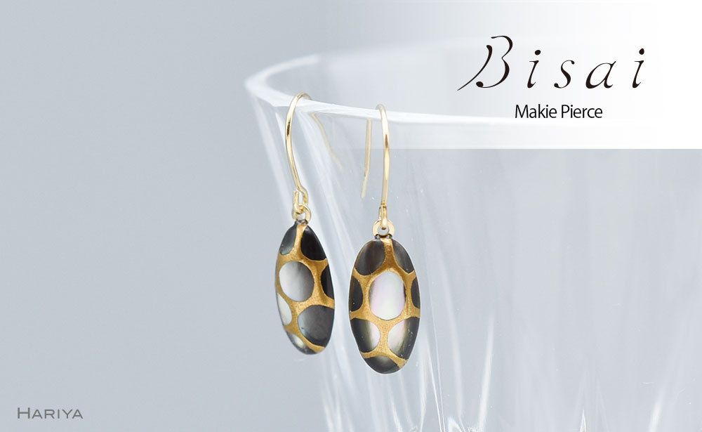 艶やかな漆、優美な金の煌めき、まろやかな光沢を放つ白蝶貝が出会ってできた「Bisai」は大人の装いに相応しいジュエリーが完成しました。