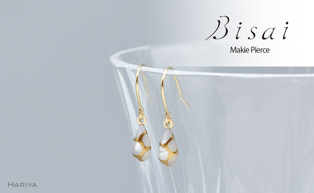 艶やかな漆、優美な金の煌めき、まろやかな光沢を放つ白蝶貝が出会ってできた「Bisai」は大人の装いに相応しいジュエリーが完成しました。
