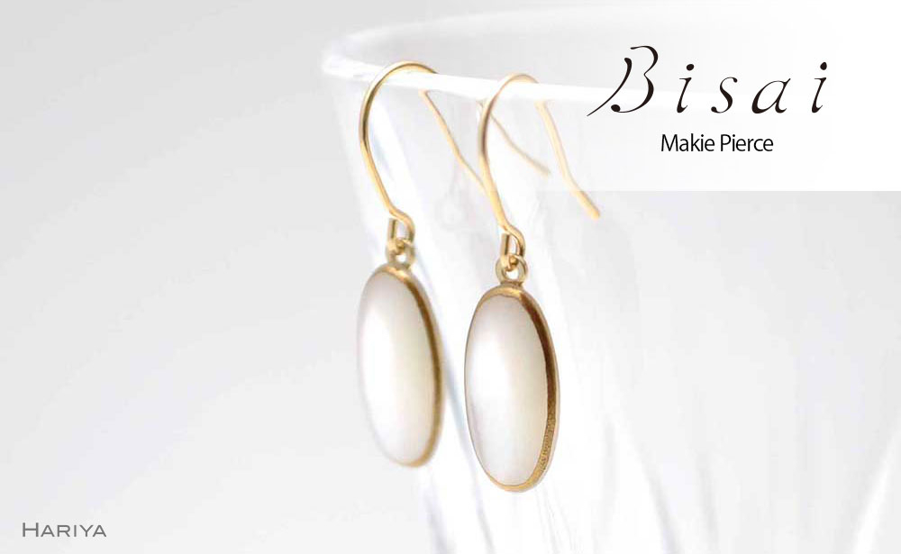 艶やかな漆、優美な金の煌めき、まろやかな光沢を放つ白蝶貝が出会ってできた「Bisai」は大人の装いに相応しいジュエリーが完成しました。