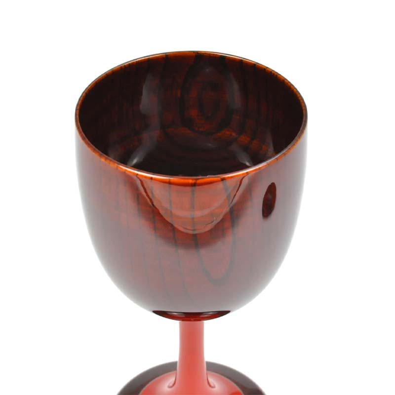 木目も美しい欅を轆轤挽きでくり抜き、艶やかな溜漆(木地呂塗)にて塗り上げた木製のワインカップです。