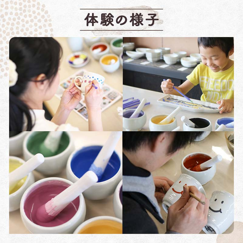 | 容量 | 九谷焼絵付け体験チケット アイテム:小皿・湯呑・などから1点チョイスして体験できます |