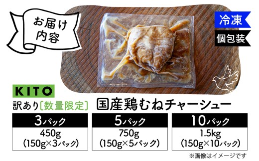 地域の生産者応援の品 手間なし・ムダなし・ちょうどいい。毎日の味方、鶏チャーシュー。 【選べる容量】【訳あり】 KITO監修 不揃いミニチャーシュー 150g ×3個~10個 計450g~1.5kg【数量限定】| 冷凍 訳あり ふるさと 叉焼 鶏肉 むね肉 胸肉 惣菜 おかず おつまみ お取り寄せ 450グラム 750グラム 1500g 1500グラム 加工品