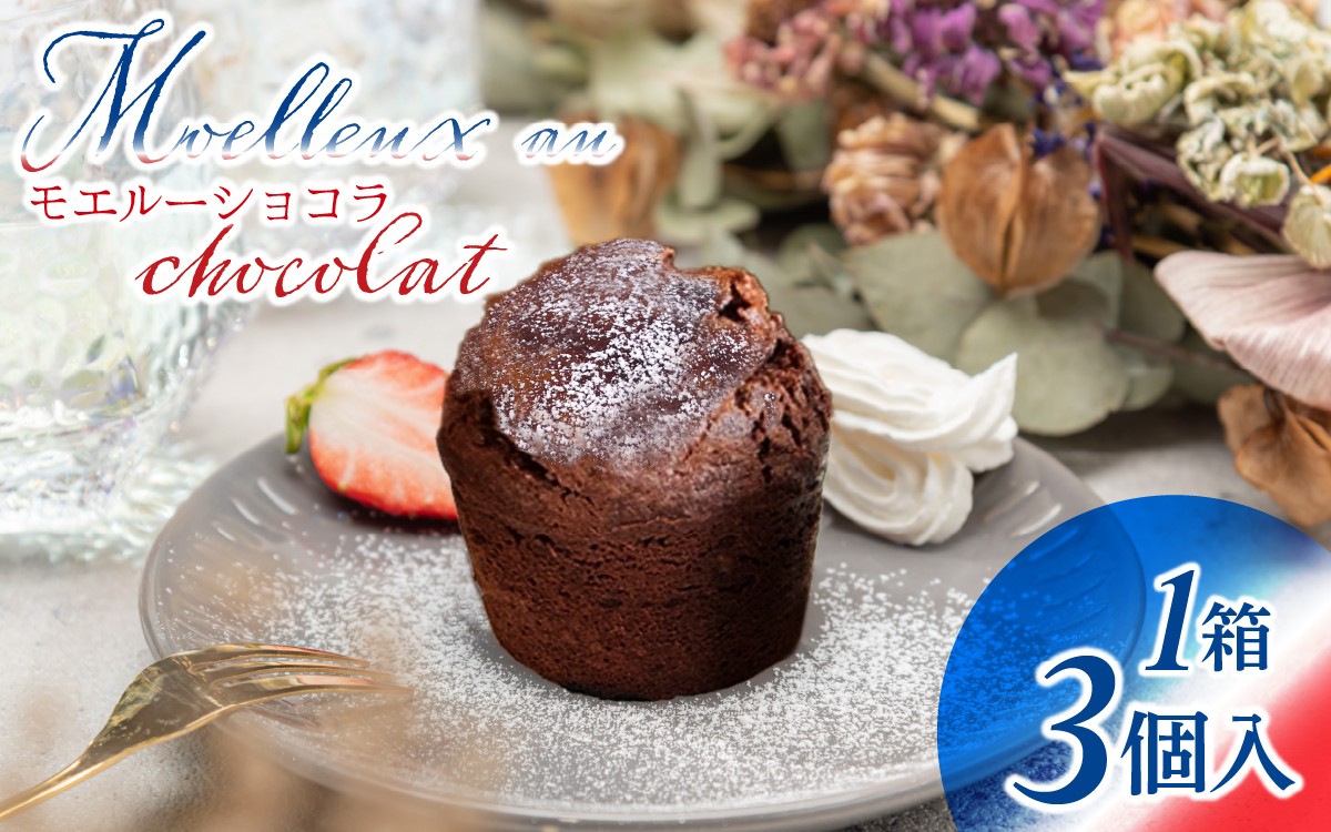 店頭では即売り切れの人気スイーツ!上質の材料に拘ったフランス3星レストランの味 【フランス三ツ星の味】MOELLEUX CHOCOLAT モエルーショコラ 1箱(3個入り)| スイーツ お菓子 デザート 人気 洋菓子 冷蔵 チョコレートケーキ チョコケーキ フォンダンショコラ 濃厚 しっとり フランス料理 仏料理