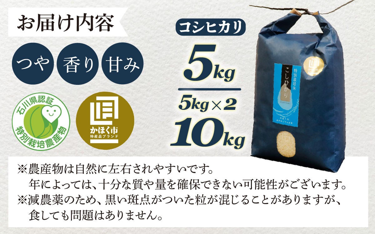 | 容量 | こしひかり 5kg or 10kg (令和7年産) |