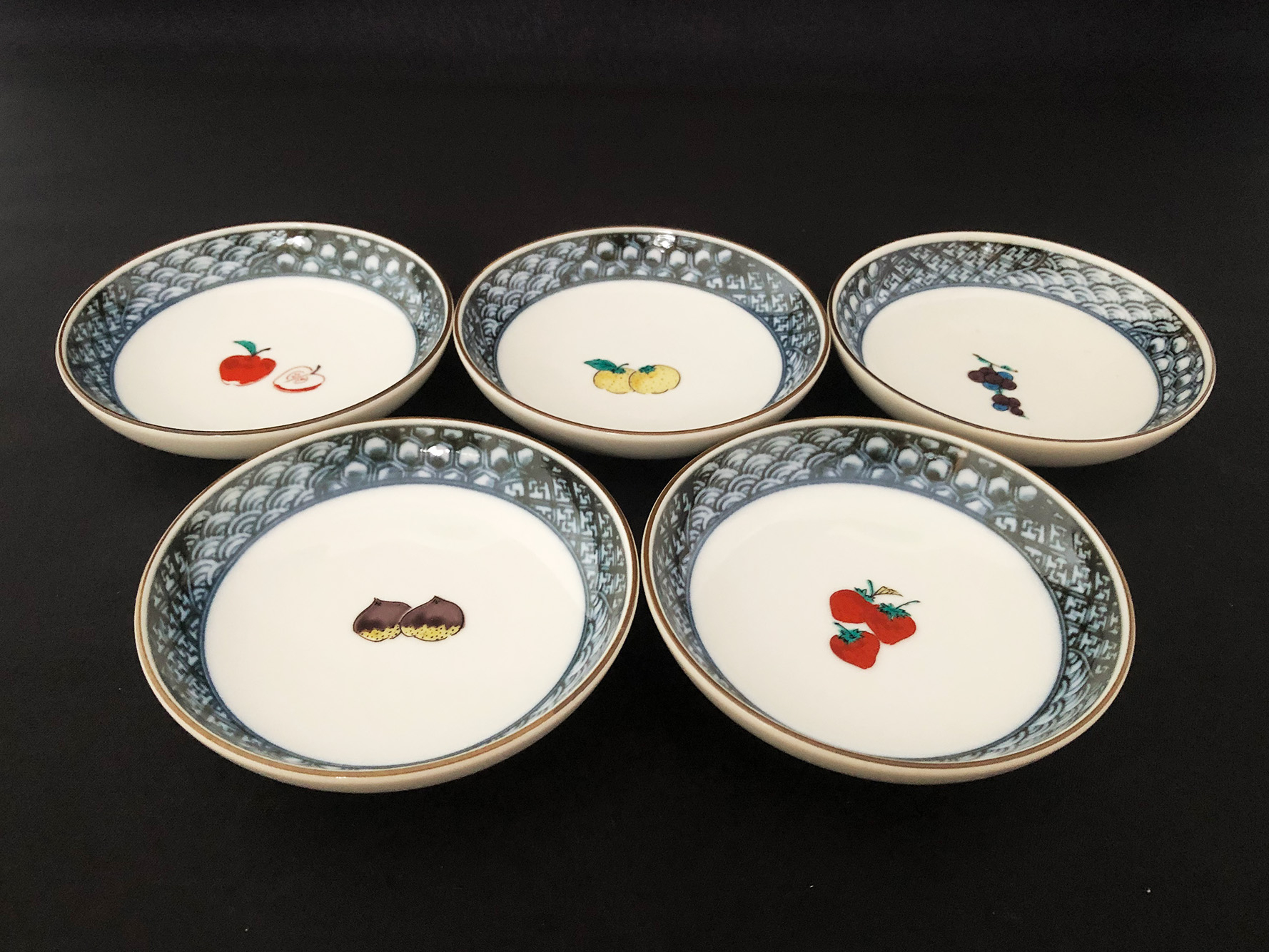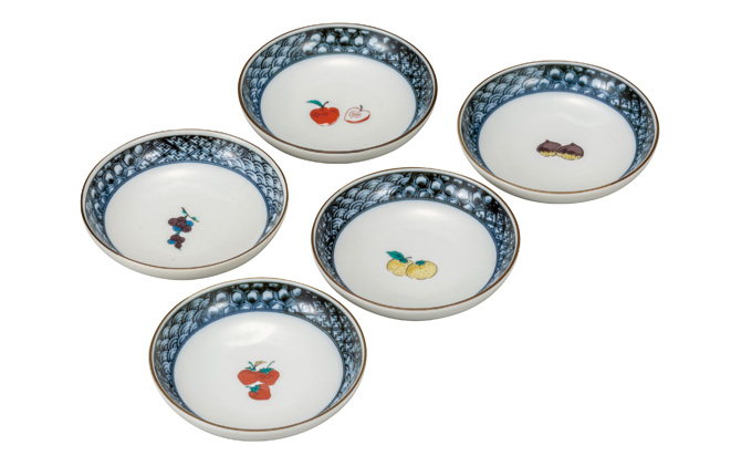 豆皿5枚セットです。可愛らしい果物を描いています。