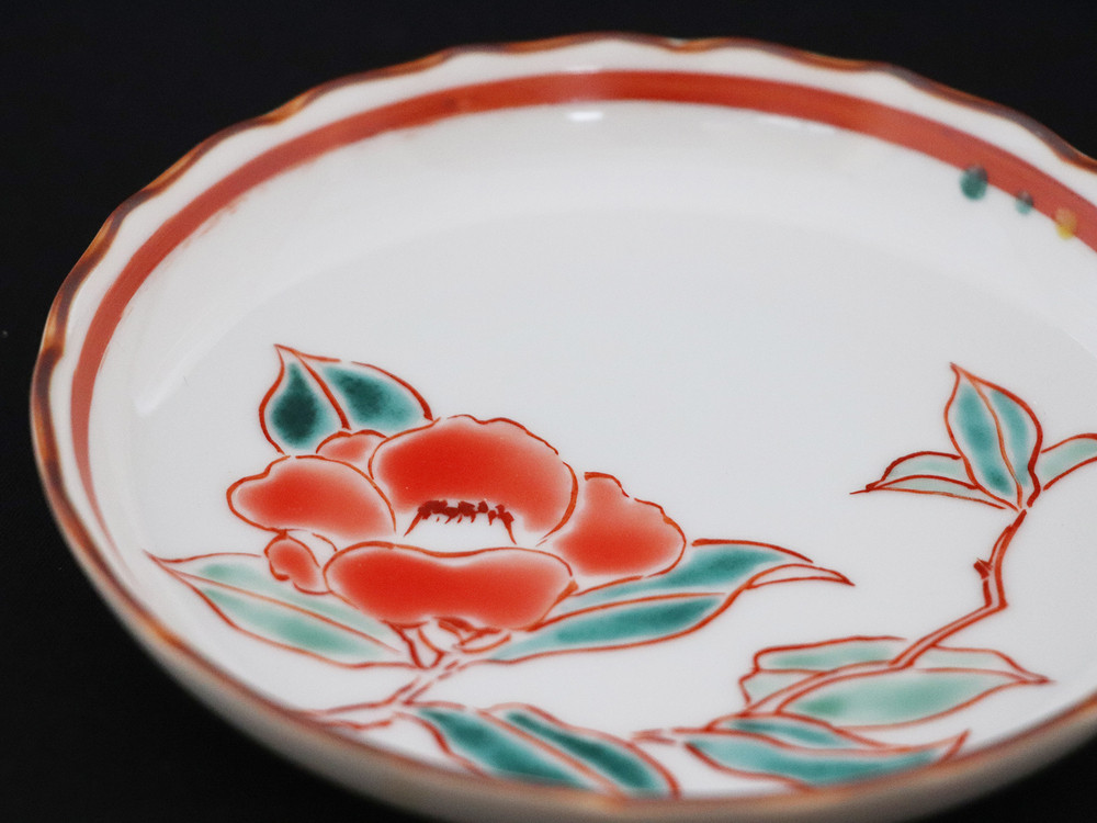 径13.8cmの使いやすいお皿。見込みに描かれた鮮やかな四季の花、なんとも愛らしく食卓を和やかにかつ華やかに演出してくれます。