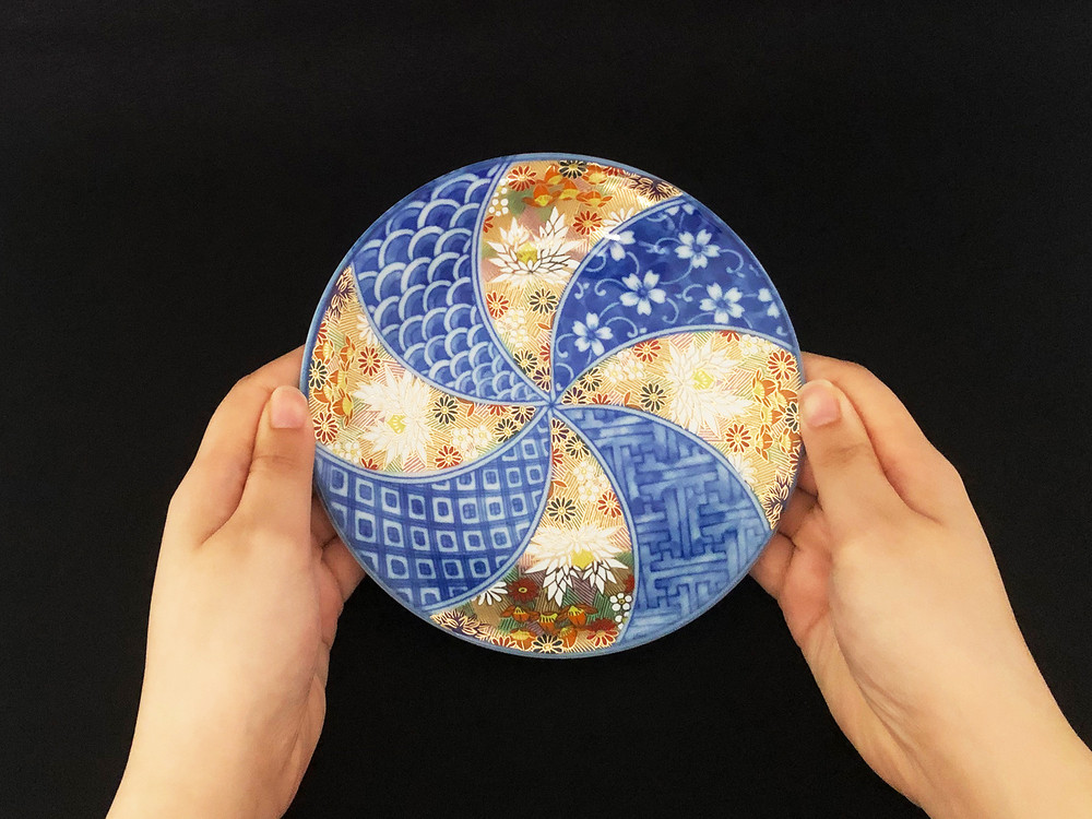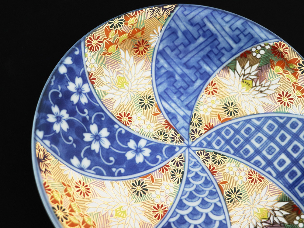 色々な花を金で縁取りしてある、鮮やかなお皿です。