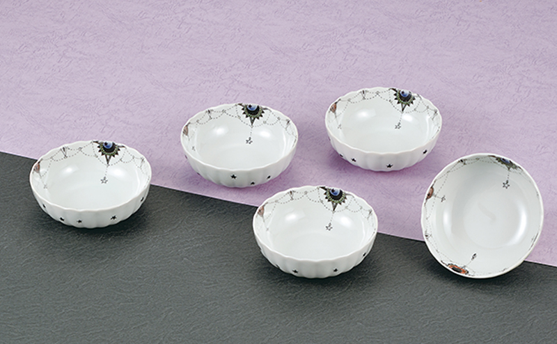 上品な細い線の技術が光るモダンな小鉢揃です。手描きのこだわった器で、贈り物にも大変おすすめです。