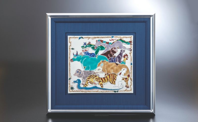 それぞれ個性的で愛嬌のある十二支が描かれたアート作品です。伝統的な日本の干支をテーマに九谷焼ならではの鮮やかな色彩と現代的な感性で描かれた陶額は和洋の空間を問わず壁面を彩るインテリアとしてお楽しみ頂けます。