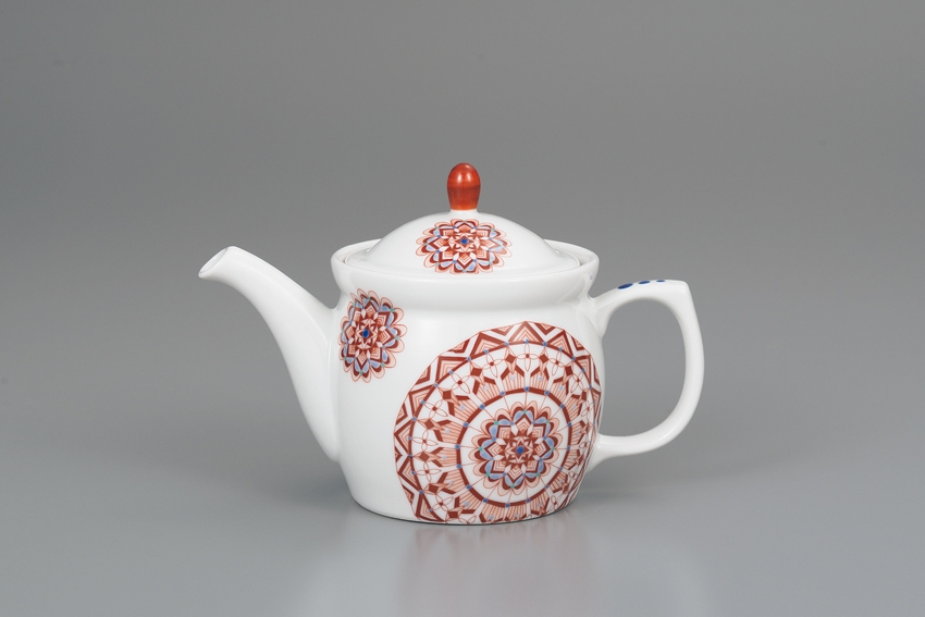 細かい丸紋のデザインが、シャープなフォルムと合って、美しいポットです。