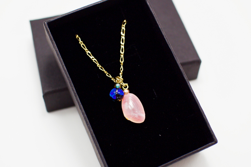 全国的に珍しく多くの桜貝が打ちあがる増穂浦海岸で採れた桜貝のペンダントです。