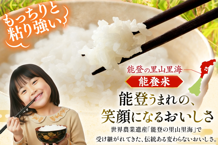 能登で作られたコシヒカリは、ほかの地域のコシヒカリよりも甘味が強く、炊き立てはもちろん、冷めても美味しいのでお弁当やおにぎりにも最適です。