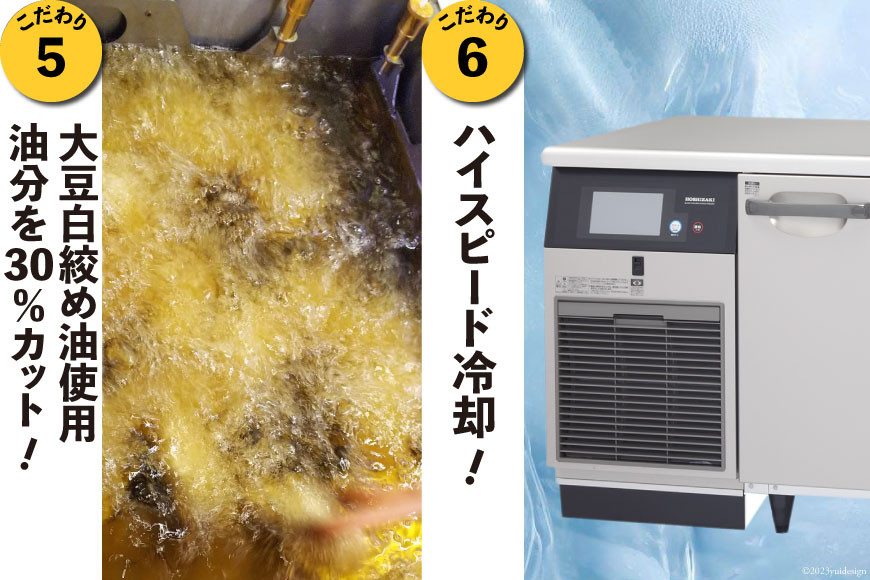 揚げ油は100%大豆白絞油。低温でじっくり揚げて、高温でカリッとさせる2度揚げ!