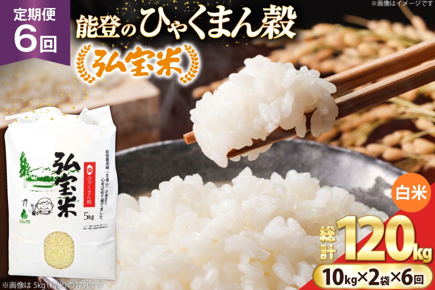 日本初の世界農業遺産「能登の里山里海」よりお届け! 米 定期便 ひゃくまん穀「弘宝米」 精米 10kg ×2袋 ×6回 総計 120kg [中西農場 石川県 宝達志水町 38601375] お米 白米 ひゃくまん穀 美味しい 農家 直送 6ヶ月 120キロ 20キロ 石川 能登