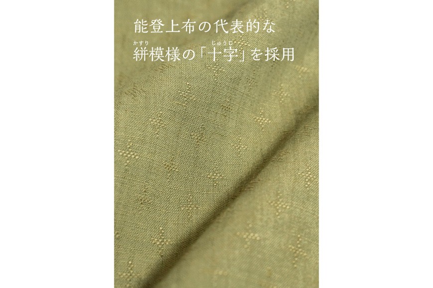 石川県指定無形文化財である"能登上布"の伝統的な柄や色合いを受け継ぎながら、テクシるが進化させたオリジナル生地「NEO能登上布」を100%使用。