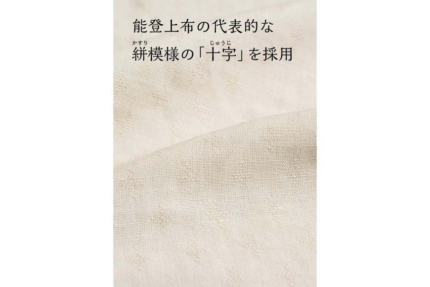石川県指定無形文化財である"能登上布"の伝統的な柄や色合いを受け継ぎながら、テクシるが進化させたオリジナル生地「NEO能登上布」を100%使用。