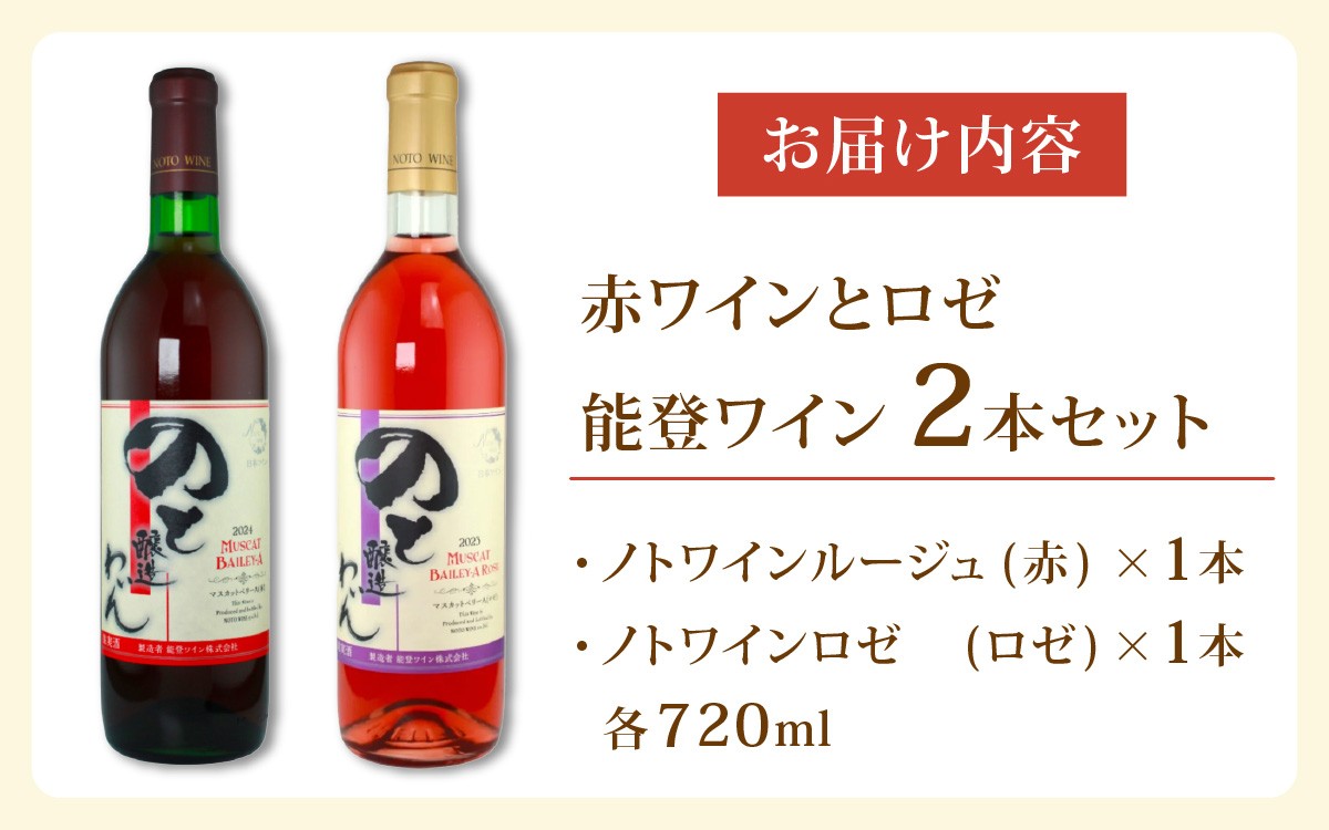 能登の気候、土壌、そして生産者の熱意で造り上げたワイン 【先行予約】赤ワインとロゼの能登ワイン2本セット【2025年12月以降順次発送】|ワイン わいん 赤 白 ロゼ ぶどう ブドウ 葡萄 熟成 牡蠣 かき カキ 能登 奥能登 テロワール 畑