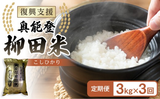 【復興支援】【令和7年度産】奥能登柳田米B4<定期便>3kg×3回