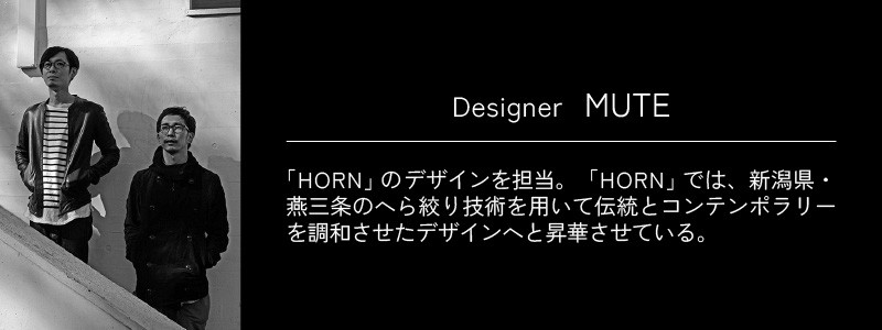 駅や学校で見る時計のような、しっかりとした安定感を軽快に仕上げているフレームは、新潟燕三条のへら絞り。伝統とコンテンポラリーの調和により、見るものを魅了する美しいHORNが作られました。