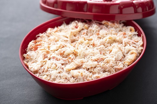 電子レンジで温めるだけで簡単なのに、カニもたっぷりで美味しくて大満足。是非リピートしようと思っています。