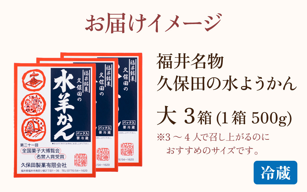 冬季限定、福井名物の久保田の水ようかんです。 【先行予約】福井名物 久保田の水ようかん 大3枚入り【11月上旬より順次発送】[A-059001]