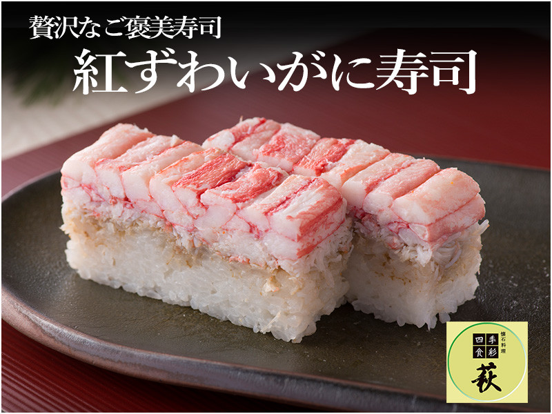 紅ずわいがにの身をふんだんに使用し、食べ応えたっぷりの押し寿司。