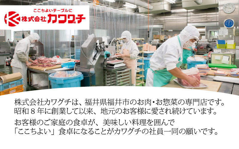 昭和8年創業。福井市の精肉専門店カワグチのグランプリ金賞を2回受賞した「ざくざくキャベツのメンチカツ」です。