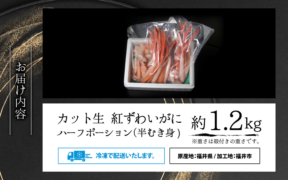 最新冷凍技術で次元の異なる鮮度を実現! 上質な品質の“紅ずわいがに” 【越前産】【最新の冷凍技術】"カット生" 紅ずわいがにハーフポーション(半むき身) 1.2kg【かに カニ 蟹 ハーフポーション しゃぶしゃぶ むき身 紅ズワイガニ グルメ 冷凍 国産】 [B-107001]