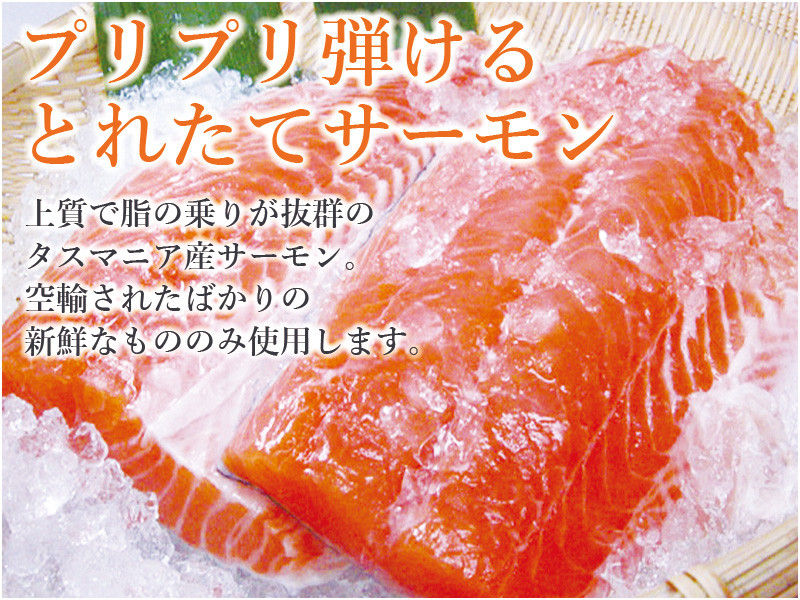 特定原材料8品目は使用していません 【原材料】 サーモン(タスマニア産)、米(福井産米)、イクラ醤油漬け、砂糖、酢、塩、昆布 |