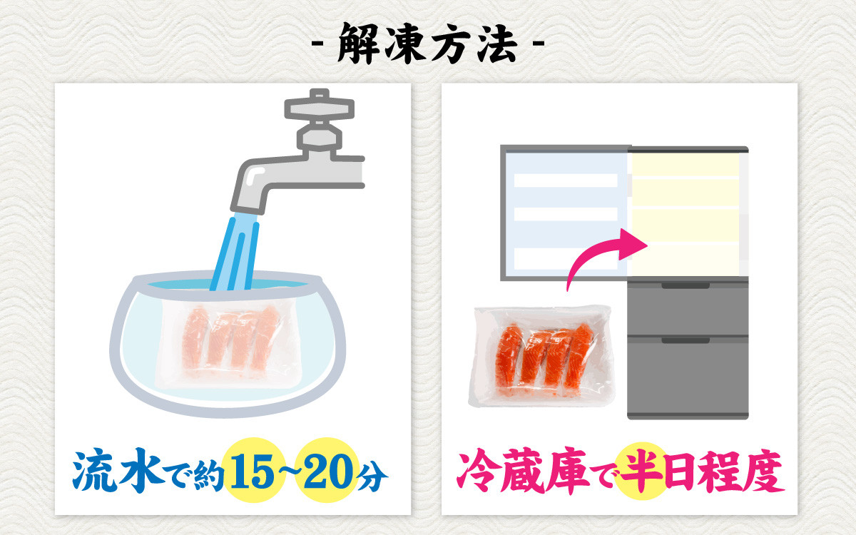 ※切身の大きさや温度の違いで変わりますので様子を確認しながら解凍して下さい