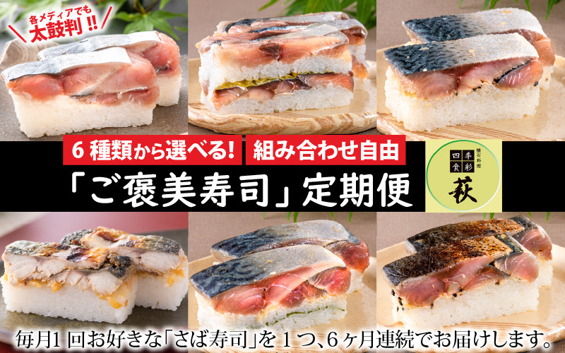 毎月1回お好きな「さば寿司」を1つ、6ヶ月連続でお届けします。 【 定期便6回コース 】選べる!贅沢すぎる「さば寿司」定期便 [H-013029] / 定期便 寿司定期便 お寿司定期便 6回定期便 6ヶ月定期便 6ヵ月定期便 生鯖 鯖ずし 海鮮 魚貝 寿司 こぶ締め 昆布締め 昆布〆 こぶ〆 コンブ 漬け 鯖 冷蔵 炙り 酢 黒酢 味噌 みそ