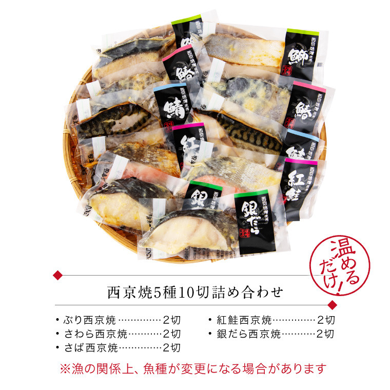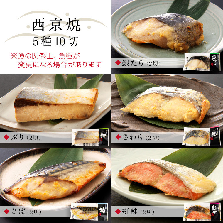 電子レンジや湯せんで温めるだけでご家庭で簡単に専門店の味が楽しめます 西京漬け 5種10切セット [B-088055]